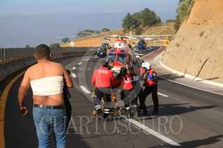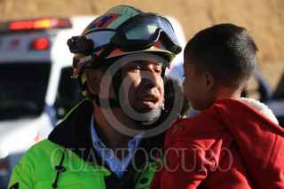 CIUDAD DE MÉXICO, 20DICIEMBRE2016.- Una persona muerta y 42 personas lesionadas lesionadas fue el saldo de una voladura de un autobús que circulaba sobre el kilómetro 42 de la autopista México-Puebla, servicio de emergencia de todas las corporaciones auxiliaron en el percance asi como cuatro helicópteros del escuadrón Cóndores y Relámpagos. En la imagen un paramedico de Capufe tranquiliza a un niño que viajaba en el autobús, su papá, no alcanzó traslado aéreo. FOTO: SAÚL LÓPEZ /CUARTOSCURO.COM