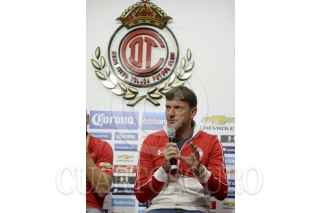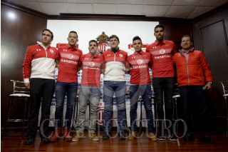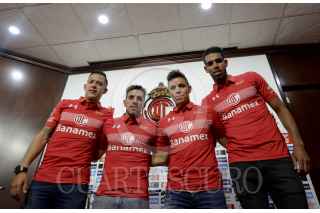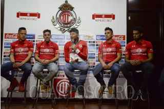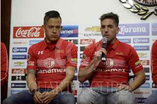 TOLUCA, ESTADO DE MÉXICO, 20DICIEMBRE2016.- Los Diablos Rojos del Toluca presentaron a sus refuerzo previo al inicio del torneo Clausura 2017, Rodrigo Salinas, Gabriel Huache, Efraín “Chispa” Velarde y Carlos Calvo, se integraron al equipo escarlata. FOTO: PILAR AGUILAR / CUARTOSCURO.COM