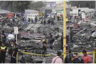 TULTEPEC, ESTADO DE MÉXICO, 20DICIEMBRE2016.- Más de 20 personas perdieron la vida y decenas de heridos fue el saldo de una explosión del mercado de cohetes, San Pablito en Tultepec. Servicios de emergencia de todas las corporaciones trabajan para auxiliar a los damnificados. FOTO: ARMANDO MONROY /CUARTOSCURO.COM