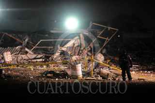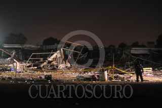 TULTEPEC, ESTADO DE MÉXICO., 21DICIENBRE2016.- Personal militar y federal, resguardan la zona del mercado de cuetes San Pablito, donde el día de ayer estallo dejando decenas de heridos y personas sin vida. En el lugar se montaron campamentos en donde permanece el Ministerio Publico, realizando los peritajes pertinentes. FOTO: LUIS CARBAYO /CUARTOSCURO.COM