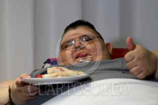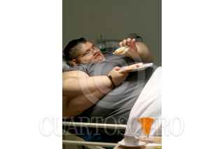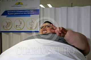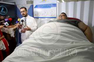 GUADALAJARA, JALISCO. 21DICIEMBRE2016.- Juan Pedro Franco de 32 años de edad, uno de los hombres mas obesos del mundo con 590 kilos de peso, estuvo en el hospital Jardines Guadalupe para una revisión de rutina, en donde también el Doctor José A. Castañeda ofreció una conferencia de prensa para dar a conocer los pormenores del estado de salud actual de Juan Pedro, el cual luego de varias semanas de rigurosa atención multidisciplinaria y de implementar un tratamiento de choque se logro estabilizar al paciente así como los avances en el procedimiento que se llevan a cabo para poder someter a cirugía reductiva a Juan Pedro. Endicha conferencia de prensa se dio a conocer un numero de cuenta a nombre de la madre del paciente, María de Jesús Salas Lemus de Santander : 60-58582329-4, dirigida a la sociedad en general que quiera apoyar a Juan Pedro Franco en su tratamiento medico. FOTO : FERNANDO CARRANZA GARCIA / CUARTOSCURO.COM