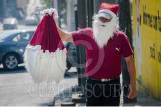 CIUDAD DE MÉXICO, 21DICIEMBRE2016.- Un señor aprovecha la temporada decembrina para vender gorros con barba y bigote de Santa Claus sobre la avenida Alta Tensión, en la delegación Álvaro Obregón. FOTO: DIEGO SIMÓN SÁNCHEZ /CUARTOSCURO.COM