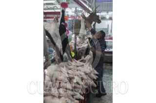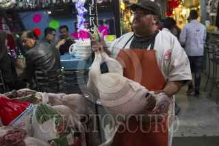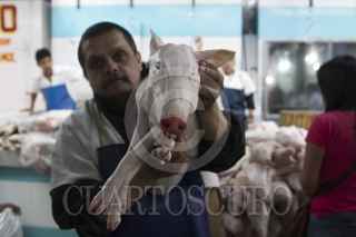 CIUDAD DE MÉXICO, 21DICIEMBRE2016.- Comerciantes del mercado de Pugibet ofertan todo tipo de carnes, desde las tradicionales como; el pavo, pescado y el cerdo, hasta las más exóticas como; el lechón, cabra, jabalí, entre otras, que serán incluidas en la cena de navidad de cientos de mexicanos. FOTO: MOISÉS PABLO /CUARTOSCURO.COM