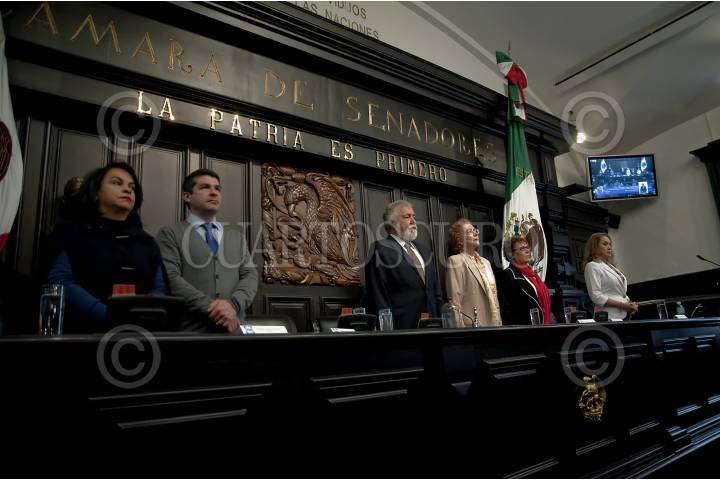 CIUDAD DE MÉXICO, 21DICIEMBRE2016.- Los constituyentes Olga María del Carmen Sánchez Cordero, Irma Eréndira Sandoval, Javier Quijano y Bernardo Bátiz, en sesión de la asamblea en la sede de Xicohténcatl. FOTO: CUARTOSCURO.COM