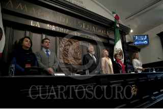 CIUDAD DE MÉXICO, 21DICIEMBRE2016.- Los constituyentes Olga María del Carmen Sánchez Cordero, Irma Eréndira Sandoval, Javier Quijano y Bernardo Bátiz, en sesión de la asamblea en la sede de Xicohténcatl. FOTO: CUARTOSCURO.COM