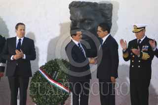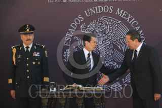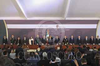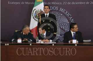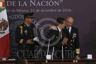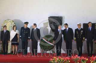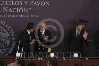 ECETEPEC, ESTADO DE MÉXICO, 22DICIEMBRE2016.- Eruviel Ávila, gobernador del Estado de México, Enrique Peña Nieto presidente de México, Silvano Aureoles, gobernador de Michoacán y Vidal Francisco Soberón, Secretario de la Armada de México, al termino del CCI aniversario luctuoso del generalisimo don José María Morelos y Pavón "Siervo de la Nación" realizado en la Casa Morelos. FOTO: SAÚL LÓPEZ /CUARTOSCURO.COM