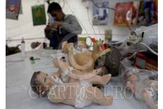 TOLUCA, ESTADO DE MÉXICO, 23DICIEMBRE2016.- Poco trabajo han tenido los restauradores de imágenes religiosas como el Niño Dios, los artesanos instalados en el Jardín Zaragoza. Las figuras son pocas a pesar de que ya solo falta un día para celebrarse la Noche Buena. FOTO: PILAR AGUILAR /CUARTOSCURO.COM