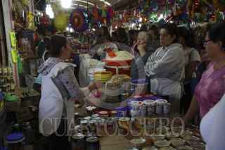 CIUDAD DE MÉXICO, 24DICIEMBRE2016.- Personas acudieron al mercado de Jamaica a comprar manzanas, maíz pozolero, crema, pastas, para cena de noche buena. FOTO: ANTONIO CRUZ /CUARROSCURO.COM