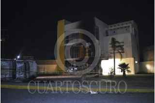 SAN PABLO DEL MONTE, TLAXCALA, 26DICIEMBRE2016.- Alrededor de las 23 horas del 25 empezó un conflicto cuando una muchedumbre enardecida destruyó la presidencia municipal, quemó dos patrullas y la unidad de servicio de mantenimiento del alumbrado, corrió a la prensa y mantuvo retenido al un elemento de la Comisión Estatal de Seguridad. La Cruz Roja traslado a un elemento de apellido Zainos, quien presentaba traumatismo craneoencefálico; los lugareños convirtieron a la cabecera de ese municipio en tierra de nadie, donde ni los granaderos pudieron entrar para poner orden. Un supuesto secuestro de dos niños por 4 sujetos que viajaban en una camioneta negra, hizo que se corriera la voz entre la población, del barrio de “El Cristo”, quienes exigían justicia inmediata. Pobladores armados con palos, machetes y enormes martillos le prendieron fuego a la unidad de mantenimiento de alumbrado público y a dos patrullas de la CES, una fue volcada, además causaron destrozos al edificio por la supuesta desaparición de dos menores. FOTO: JORGE LEZAMA /CUARTOSCURO.COM