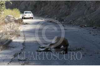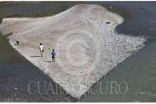 COPALILLO, GUERRERO, 26DICIEMBRE2016.- Dos niños acompañados de su perro caminan sobre una isleta que se formó en el rio Balsas a su paso por el pueblo de Papalutla. FOTO: MARGARITO PÉREZ RETANA /CUARTOSCURO.COM