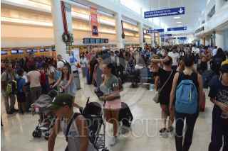 CANCÚN, QUINTANA ROO, 26DICIEMBRE2016.- El gobernador del estado Carlos Joaquín González recibió en el Aeropuerto Internacional de Cancún al pasajero 21 millones. La terminal se encuentra al tope de vacacionistas. FOTO: ELIZABETH RUIZ /CUARTOSCURO.COM