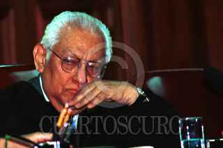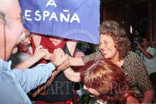 Cristina Botinelli, Osvaldo Caldu, Silvia Ponedian, Vanesa Dri, Porfirio Martínez, Violeta Zylberberg y Cristiano Botinelli, hijos de argentinos celebrando el fallo presentado en la Suprema Corte de Justicia de la extradición de Cavallo a España. FOTO: Sandra Perdomo/ CUARTOSCURO.COM