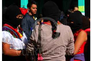 SAN CRISTÓBAL DE LAS CASAS, CHIAPAS, 30DICIEMBRE2016.- Estudiantes zapatistas durante el inicio de la novena sesión del encuentro "Los zapatistas y las ConCiencias por la Humanidad" realizado en el Auditorio del Centro Indígena de Capacitación Integral (CIDECI). Encuentro de análisis y reflexión sobre las Ciencias, realizado del 26 de diciembre al 4 de enero de 2017, convocado por el Ejercito Zapatista de Liberación Nacional (EZLN) en el marco del Congreso Nacional Indígena. FOTO: ADOLFO VLADIMIR /CUARTOSCURO.COM
