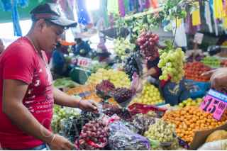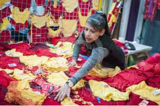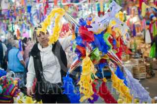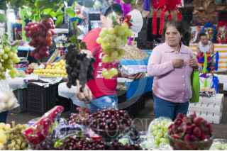 CIUDAD DE MÉXICO, 30DICIEMBRE2016.- Comerciantes del mercado de Jamaica ofrecen todo tipo de productos para fin de año. Uvas, calzones rojos y amarillos, piñatas, sidras y amuletos para la buena suerte son los productos más venidos. FOTO: DIEGO SIMÓN SÁNCHEZ /CUARTOSCURO.COM