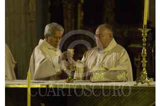 CIUDAD DE MÉXICO, 31DICIEMBRE2016.- El padre Julián López llevó a cabo la misa para dar gracias de fin de año en la Catedral de Zócalo capitalino a las 20:00 horas. FOTO: TERCERO DÍAZ /CUARTOSCURO.COM