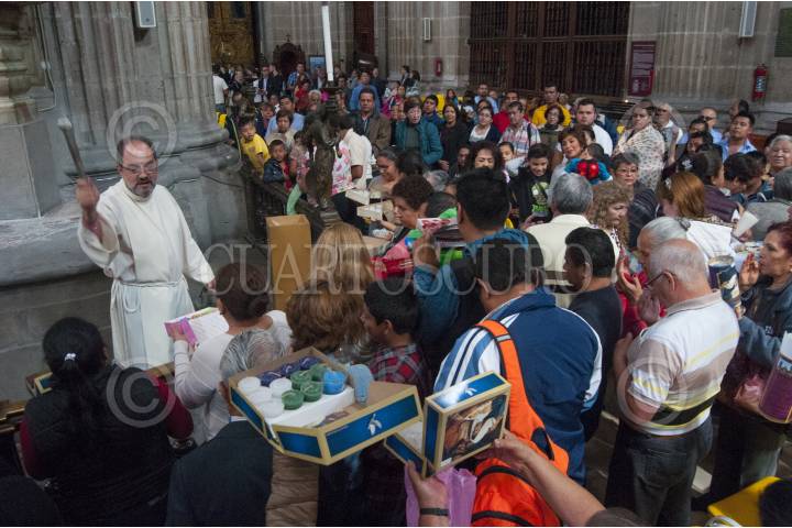 CIUDAD DE MÉXICO, 01ENERO2017.- El canónigo teólogo Julián López Amozurrutia encabezó la primera misa dominical del año en la Catedral Metropolitana. Decenas de personas acudieron para que bendijeran sus tradicionales 12 velas. FOTO: DIEGO SIMÓN SÁNCHEZ /CUARTOSCURO.COM