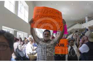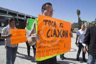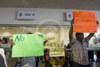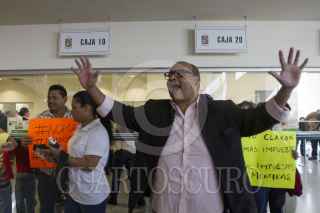 MONTERREY, NUEVO LEÓN, 02ENERO2017.- Miembros de colectivos diferentes protestaron dentro del Pabellón Ciudadano, donde se pagan los impuestos para clausurar simbólicamente las cajas y exhortar a los ciudadanos a no pagar tenencia, predial ni aumentos en la gasolina o la luz. FOTO: GABRIELA PÉREZ MONTIEL/ CUARTOSCURO.COM