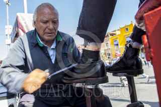 CIUDAD DE MÉXICO, 02ENERO2017.- Un señor limpia zapatos en el Zócalo para ganarse el sustento diario. FOTO: TERCERO DÍAZ /CUARTOSCURO.COM