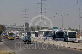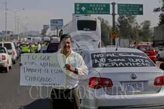 GUADALAJARA, JALISCO. 03ENERO2017.- Transportistas de transporte foráneo privado, realizaron cierres en la salida de la autopista Guadalajara-Zapotlanejo, después una marcha lenta hasta la caseta de cobro de la Joya lo que ocasiono caos vial por toda la autopista, esto en repudio al presidente de la republica, Enrique Peña Nieto por el alza de los combustibles en México. FOTO : FERNANDO CARRANZA GARCIA / CUARTOSCURO.COM