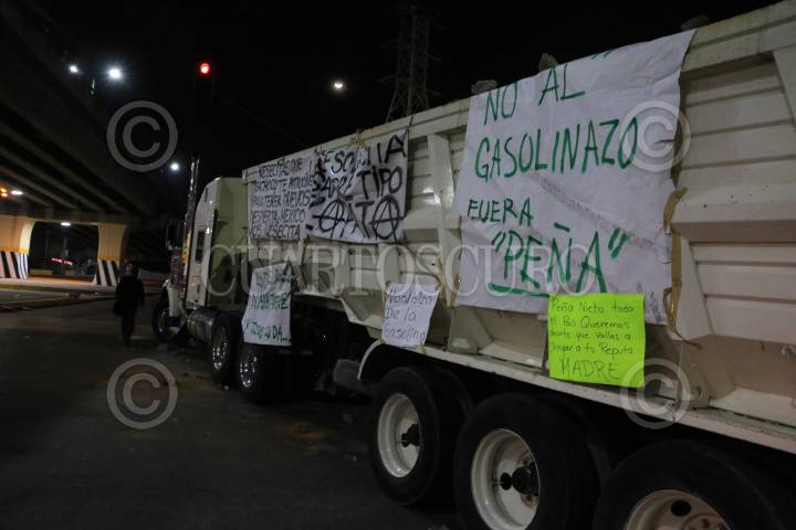 NAUCALPAN, ESTADO DE MÉXICO , 03ENERO2017.- Transportistas y vecinos de la colonia Loma Linda y San Agustín en el municipio de Naucalpan realizaron barricadas en la carretera Naucalpan-Toluca, esto para vigilar que no se realicen saqueos en la zona, el bloqueo comenzó hace 48 horas y fue llevado acabó ante el rechazo a la alza del precio de la gasolina. FOTO: SAÚL LÓPEZ /CUARTOSCURO.COM