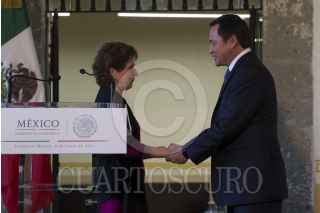 CUIDAD DE MÉXICO., 04ENERO2017.- Miguel Ángel Osorio Chong, Secretario de Gobernación dio posesión hoy a María Cristina García Cepeda, como nueva titular de la Secretaría de Cultura. FOTO: CUARTOSCURO.COM