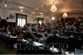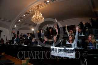CIUDAD DE MÉXICO, 04ENERO2017.- Los asambleístas Constituyentes del partido de Morena sacaron pancartas en contra por la alza de la gasolina durante en la sesión de la Asamblea Constituyente. FOTO: CUARTOSCURO.COM