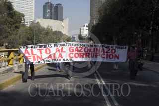 CIUDAD DE MÉXICO, 05ENERO2017.- Inconformes marcharon en contra del “Gasolinazo” desde el Ángel de la Independencia con dirección a Los Pinos. Los manifestantes fueron bloqueados a la altura de Chivatito por elementos de la Secretaría de Seguridad Pública. FOTO: GALO CAÑAS /CUARTOSCURO.COM