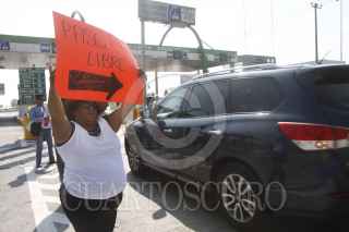 XONACATLÁN, ESTADO DE MÉXICO, 07ENERO2017.- Habitantes del Xonacatlán se instalaron en la caseta Xonacatlán, del Libramiento Ruta de la Independencia, dando el paso libre a los automovilistas como muestra del descontento por el aumento a la gasolina. FOTO: PILAR AGUILAR /CUARTOSCURO.COM