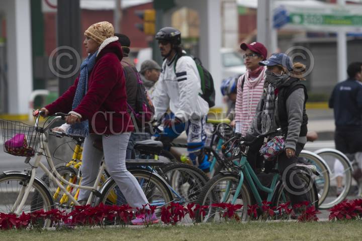 CIUDAD DE MÉXICO, 08ENERO2017.- A pesar del frío que se dejó sentir en la capital decenas de personas participaron en el paseo ciclista en avenida Reforma. Muchos llevaban abrigos, bufandas y guantes para mitigar los estragos invernales. FOTO: MOISÉS PABLO /CUARTOSCURO.COM