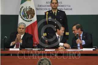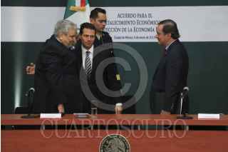 CIUDAD DE MÉXICO, 09ENERO2017.- Carlos Acevez del Olmo, dirigente de la CTM, Enrique Peña Nieto, presidente de México y Juan Pablo Castañon Castañon durante la reunión y firma de acuerdo para el fortalecimiento económico y la protección de la economía familiar realizado en la residencia oficial de Los Pinos. FOTO: SAÚL LÓPEZ /CUARTOSCURO.COM
