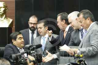 CIUDAD DE MÉXICO, 10ENERO2016.- El senador Miguel Barbosa; el diputado federal César Camacho Quiroz, y el presidente del Senado Pablo Escudero, durante la reunión de trabajo en materia de Seguridad Interior, en el Senado de la República. FOTO: CUARTOSCURO.COM