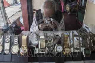 CIUDAD DE MÉXICO, 12ENERO2017.- Francisco, un señor de la tercera edad, se dedica a reparar relojes de todo tipo sobre Eje Central a unos metros del Teatro Blanquita. FOTO: TERCERO DÍAZ /CUARTOSCURO.COM