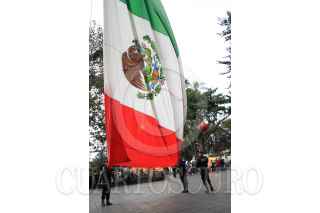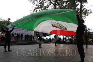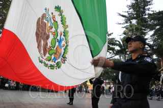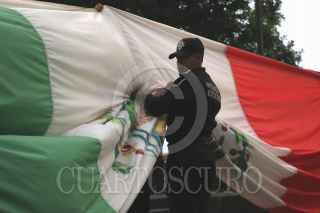 XALAPA, VERACRUZ, 11ENERO2017.- Policías estatales realizan la ceremonia del arrío de la bandera nacional en la explanada del parque Juárez ubicadO en el centro de la capital veracruzana. FOTO: SAÚL LÓPEZ /CUARTOSCURO.COM