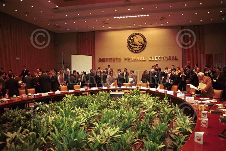 Mauricio Merino, consejero electoral, Víctor Aviles, coordinador de prensa, y José Woldenberg, consejero presidente del IFE, luego de que se pospusiera la sesión extraordinaria en el IFE. FOTO: Sandra Perdomo/CUARTOSCURO.COM