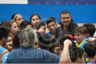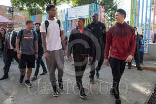CIUDAD DE MÉXICO, 13ENERO2017.- Jugadores de los Phoenix Suns de la NBA y su entrenador Earl Watson visitaron el Deportivo José María Morelos y Pavón, ubicado en la colonia Pensil, para realizar una clínica deportiva con niños afiliados a la Fundación Telmex. Durante más de una hora, los basquetbolistas pusieron a entrenar a los niños, quienes juegan en diversas ligas infantiles. FOTO: DIEGO SIMÓN SÁNCHEZ /CUARTOSCURO.COM
