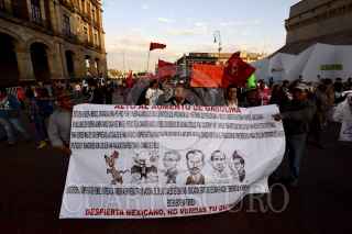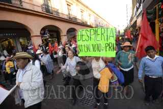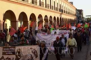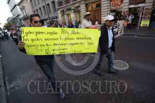 TOLUCA, ESTADO DE MÉXICO, 13ENERO2017.- Más de 800 estudiantes de la Normal Rural de Tenería, maestros, comerciantes y asociaciones marcharon por varias calles de la ciudad de Toluca en contra del aumento de la gasolina, y exigieron la renuncia del Presidente Enrique Peña Nieto, aseguran que el incremento del combustible afecta el bolsillo de los que menos tienen. FOTO: PILAR AGUILAR /CUARTOSCURO.COM