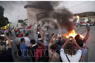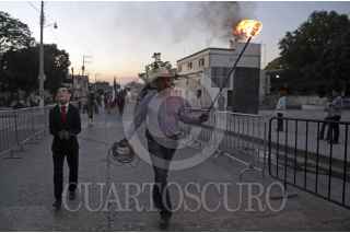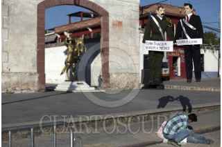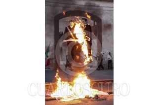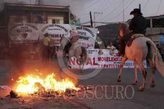TLALTIZAPAN, MORELOS, 13ENERO2017.- Con la quema de dos “monigotes”, que representaban al presidente de México, Enrique Peña Nieto y al asesino de Emiliano Zapata, coronel Jesús Guajardo, campesinos, guardias comunitarios de Los Altos y organizaciones civiles protestaron contra el “gasolinazo” en la histórica ex hacienda de Chinameca. FOTO: MARGARITO PÉREZ RETANA /CUARTOSCURO.COM