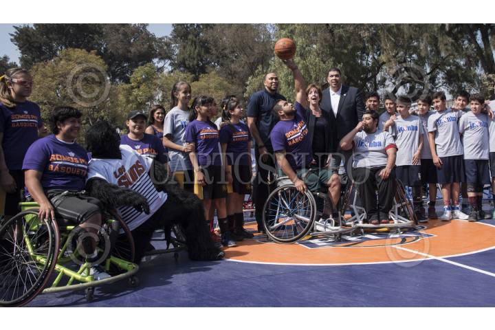 CIUDAD DE MÉXICO, 14ENERO2017.- Miguel Ángel Mancera, Jefe de Gobierno de la Ciudad de México, Raúl Zarraga, Presidente de la oficina de la NBA en México, Adam Silver, Comisionado de la NBA, Robert Sarver, dueño del equipo Suns de Phoenix Suns, Roberta S. Jacobson, Embajadora de los Estados Unidos de América en el país y Doug Ducey, Gobernador del estado de Arizona, encabezaron la rehabilitación de las canchas de baloncesto de la Ciudad Deportiva de la Magdalena Mixhuca. FOTO: TERCERO DÍAZ /CUARTOSCURO.COM