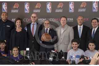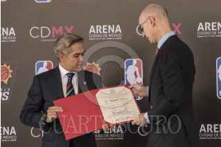 CIUDAD DE MÉXICO, 14ENERO2017.- Miguel Ángel Mancera, Jefe de Gobierno de la Ciudad de México, Raúl Zarraga, Presidente de la oficina de la NBA en México, Adam Silver, Comisionado de la NBA, Robert Sarver, dueño del equipo Suns de Phoenix Suns, Roberta S. Jacobson, Embajadora de los Estados Unidos de América en el país y Doug Ducey, Gobernador del estado de Arizona, encabezaron la rehabilitación de las canchas de baloncesto de la Ciudad Deportiva de la Magdalena Mixhuca. FOTO: TERCERO DÍAZ /CUARTOSCURO.COM