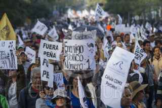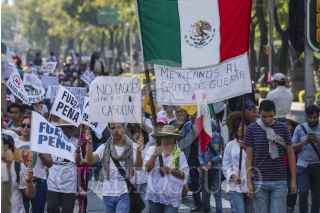 CIUDAD DE MÉXICO, 15ENERO2017.- Cientos de ciudadanos marcharon sobre avenida de la Reforma en rechazo al aumento en el precio de la gasolina y exigiendo la renuncia del presidente Enrique Peña Nieto. Es el quinceavo día consecutivo de protestas desde el llamado gasolinazo. FOTO: ISAAC ESQUIVEL /CUARTOSCURO.COM