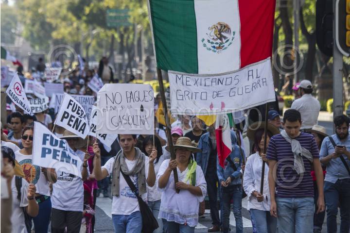 CIUDAD DE MÉXICO, 15ENERO2017.- Cientos de ciudadanos marcharon sobre avenida de la Reforma en rechazo al aumento en el precio de la gasolina y exigiendo la renuncia del presidente Enrique Peña Nieto. Es el quinceavo día consecutivo de protestas desde el llamado gasolinazo. FOTO: ISAAC ESQUIVEL /CUARTOSCURO.COM