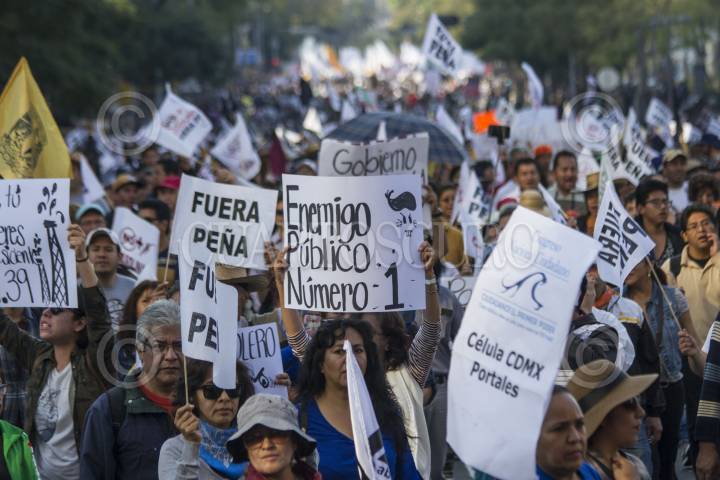CIUDAD DE MÉXICO, 15ENERO2017.- Cientos de ciudadanos marcharon sobre avenida de la Reforma en rechazo al aumento en el precio de la gasolina y exigiendo la renuncia del presidente Enrique Peña Nieto. Es el quinceavo día consecutivo de protestas desde el llamado gasolinazo. FOTO: ISAAC ESQUIVEL /CUARTOSCURO.COM