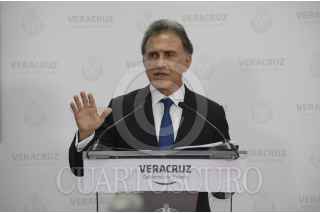 XALAPA, VERACRUZ, 16ENERO2017.- Miguel Ángel Yunes Linares gobernador del estado anuncio que presentó una iniciativa de Reforma a la Ley de Tránsito ante el Congreso Local con el fin de derogar las fotomultas. FOTO: ALBERTO ROA /CUARTOSCURO.COM