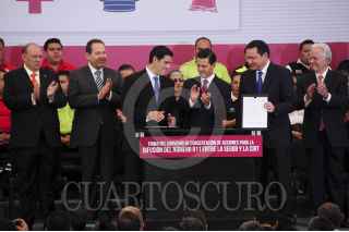 TOLUCA, ESTADO DE MÉXICO, 16ENERO2017.- Enrique Peña Nieto, presidente de México y Eruviel Ávila Villegas, gobernador del Estado de México, durante la presentación del nuevo numero de emergencias 911 que tuvo lugar en la base de operación C5 de Toluca. FOTO: TONATIU CRUZ /CUARTOSCURO.COM