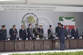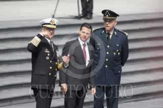 CIUDAD DE MÉXICO, 17ENERO2017.- Enrique Peña Nieto, presidente de la República; Vidal Francisco Soberón Sanz, secretario de Marina, y Salvador Cienfuegos Zepeda, secretario de la Defensa Nacional, encabezaron la entrega de menciones honoríficas a integrantes de la SEMAR, la SEDENA y la Fuerza Aérea. El jefe del ejecutivo destacó y agradeció la labor que realizan los integrantes de las fuerzas armadas para el resguardo de la seguridad nacional. FOTO: GALO CAÑAS /CUARTOSCURO.COM