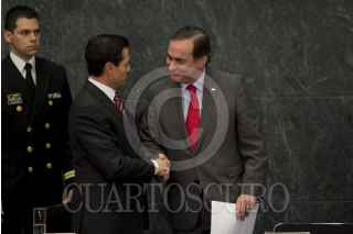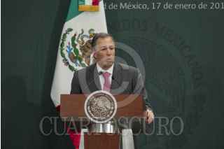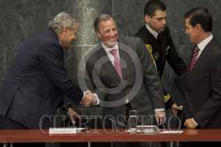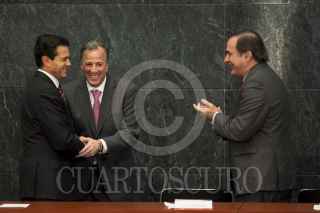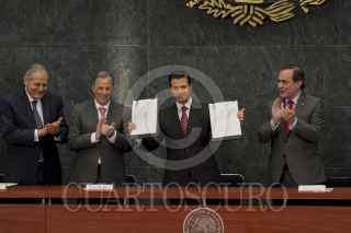 CIUDAD DE MÉXICO, 17ENERO2017.- Luis Robles Miaja, presidente de la Asociación de Bancos de México; José Antonio Meade Kuribeña, secretario de Hacienda y Crédito Público; El presidente Enrique Peña Nieto, y Juan Pablo Castañón, presidente del Consejo Coordinador Empresarial, durante la firma de los decretos para la deducción inmediata y la repartición de capitales, con el fin de impulsar la inversión productiva y la generación de empleo. FOTO: GALO CAÑAS /CUARTOSCURO.COM
