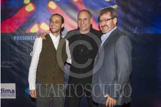 CIUDAD DE MÉXICO, 17ENERO2017.- Isidoro Hamui, director del 14o Festival Internacional de Cine Judío en México, el músico invitado David Broza, y Mark Liwerant Bokser, presidente del consejo directivo del festival, durante la alfombra roja de inauguración del festín cinematográfico. FOTO: ISAAC ESQUIVEL /CUARTOSCURO.COM