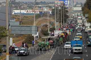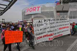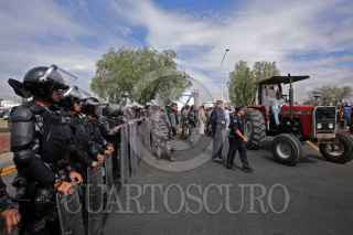 GUADALAJARA, JALISCO. 18ENERO2017.- Ejidatarios del poblado de El Zapote nuevamente protestaron y exigen un pago justo por sus tierras. Desde tempranas horas, alrededor de 200 ejidatarios marcharon del parque Montenegro hacia el Aeropuerto Internacional Miguel Hidalgo, en donde se manifestaron y mantendrán un plantón permanente, por lo que elementos de antimotines y policías federales resguardaron los alrededores de las inmediaciones de la terminal aérea, para evitar que los manifestantes tomaran las instalaciones del Aeropuerto. FOTO : FERNANDO CARRANZA GARCIA / CUARTOSCURO.COM