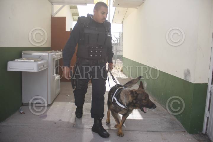 CIUDAD JUÁREZ, CHIHUAHUA, 19ENERO2017.- Con la finalidad de evitar el uso de drogas o artefactos que pongan en riesgo la integridad de los adolescentes elementos de la Unidad Canina K-9 de la Secretaría de Seguridad Pública Municipal, realizaron un “Operativo Mochila” a los alumnos de la Telesecundaria Independencia . Los operativos continuarán de manera permanente a petición de las autoridades educativas. FOTO: NACHO RUÍZ /CUARTOSCURO.COM