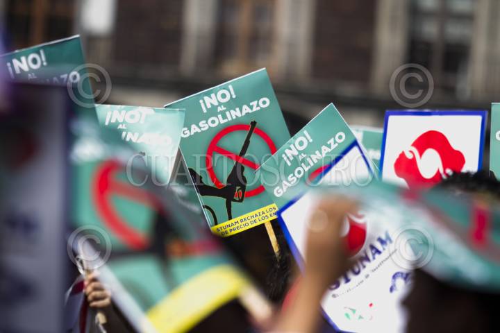 CIUDAD DE MÉXICO, 19ENERO2017.- Integrantes del Sindicato de Trabajadores de la Universidad Autónoma de México (STUNAM) se manifestaron en contra del gasolinazo en la expladana del Zócalo. En la imagen Agustín Rodríguez, líder del STUNAM. FOTO: MOISÉS PABLO /CUARTOSCURO.COM
